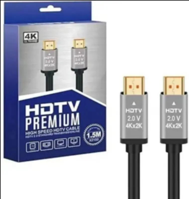Premium 1.5-Meter HDMI Cable designed for high-definition 4K video and crystal-clear audio. This cable comes in an attractive Retail Box packaging, making it perfect for shop displays and premium gifting. It ensures a stable connection between your 4K TV, Gaming Consoles, Laptops, and Monitors with high-speed data transfer and zero lag.