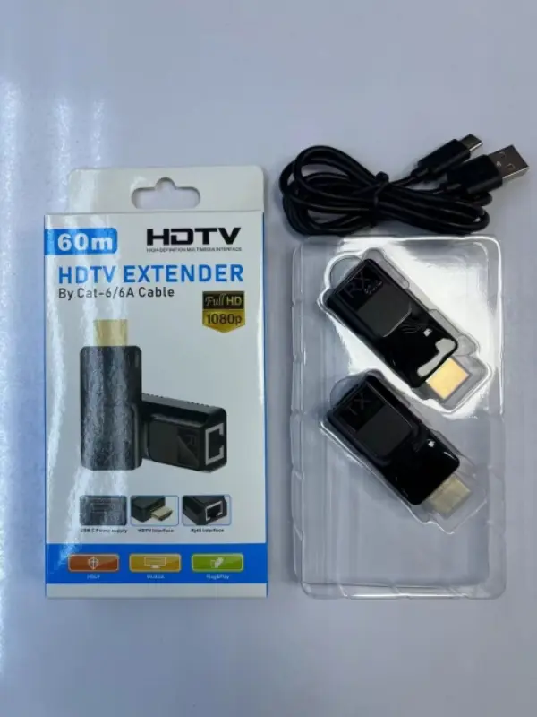 The Compact HDMI LAN Extender (60-Meter Small Model) is an efficient and space-saving solution for extending high-definition video over long distances. Using a single Cat5e or Cat6 Ethernet cable, this small-form-factor device allows you to transmit 1080p Full HD signals up to 60 meters. Its miniature design makes it perfect for discreet installations behind TVs, inside small conduits, or in tight office setups without compromising on signal stability.